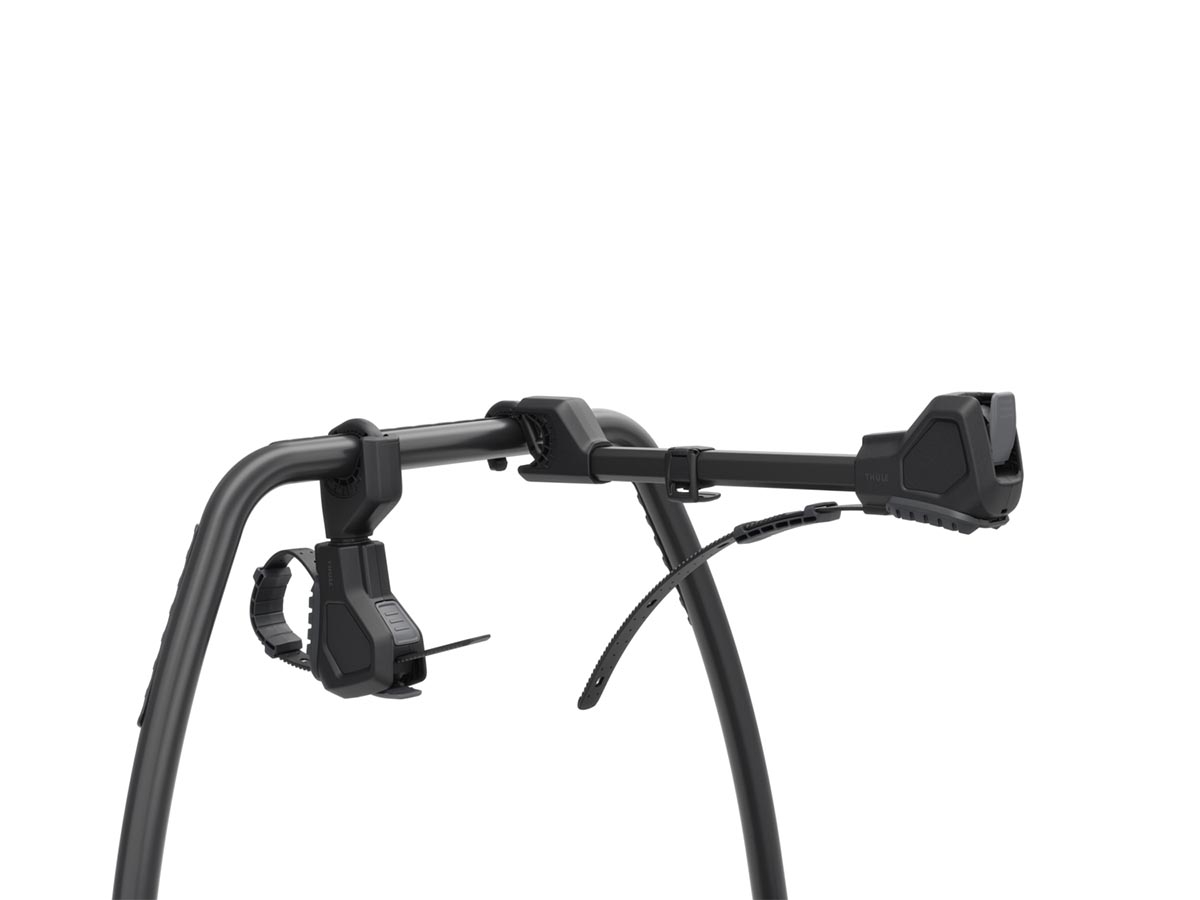 El sistema de brazo de bicicleta cuenta con brazos independientes con cabezal giratorio y sujeción de correa, asegurando un ajuste fiable para una amplia gama de tamaños y geometrías de cuadro, incluyendo cuadros de carbono.