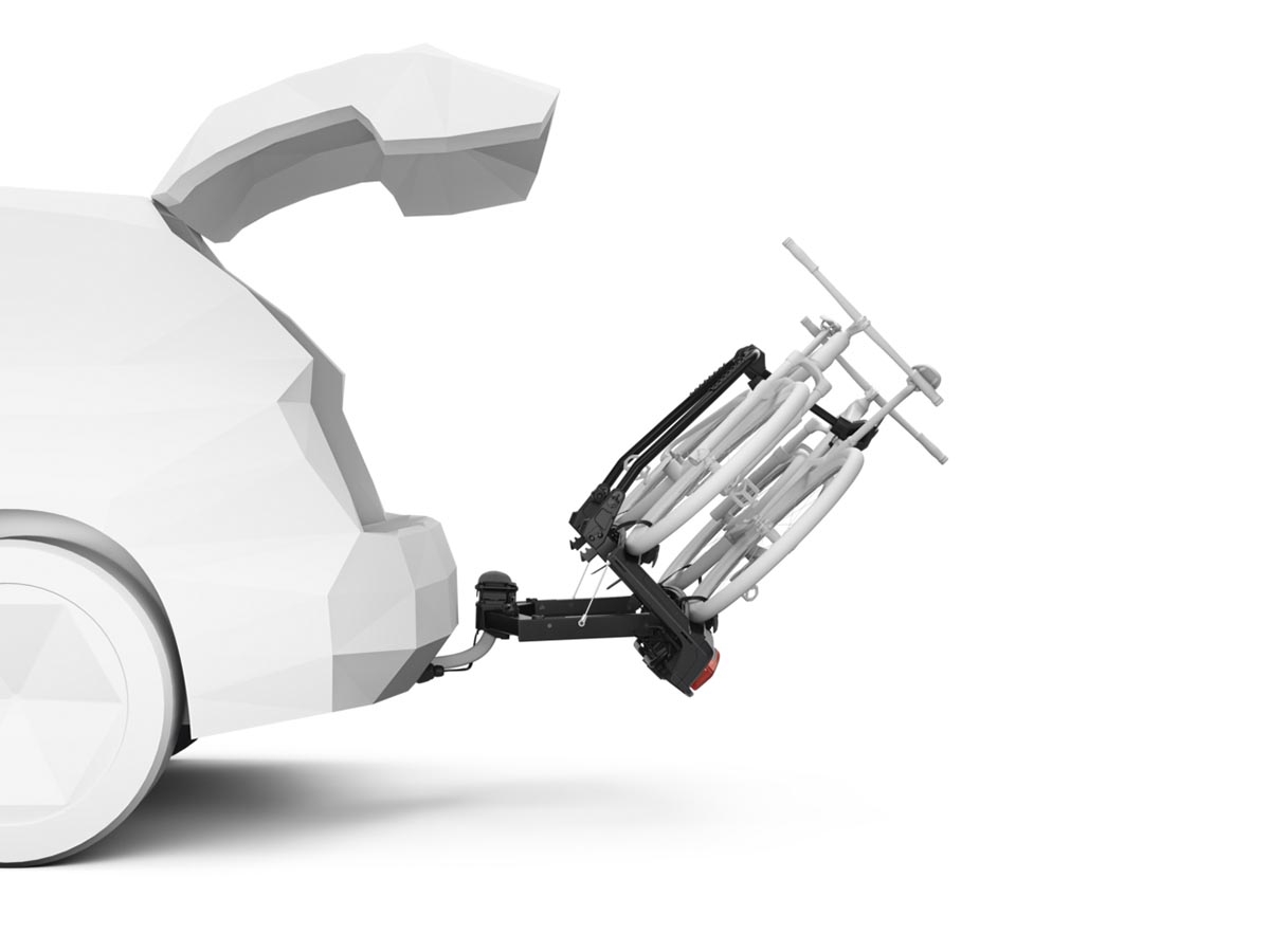 Un portabicicletas premium montado en la bocha de remolque, con un sistema de fijación práctico, capacidad de distancia entre ejes extendida y manejo fácil e intuitivo.