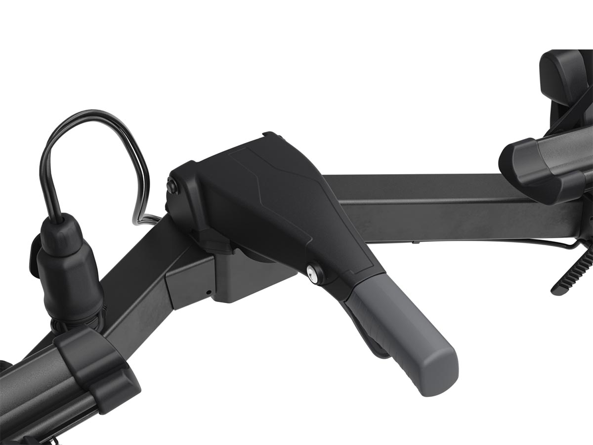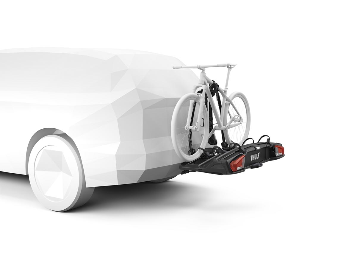 Un portabicicletas premium montado en la bocha de remolque, con un sistema de fijación práctico, capacidad de distancia entre ejes extendida y manejo fácil e intuitivo.