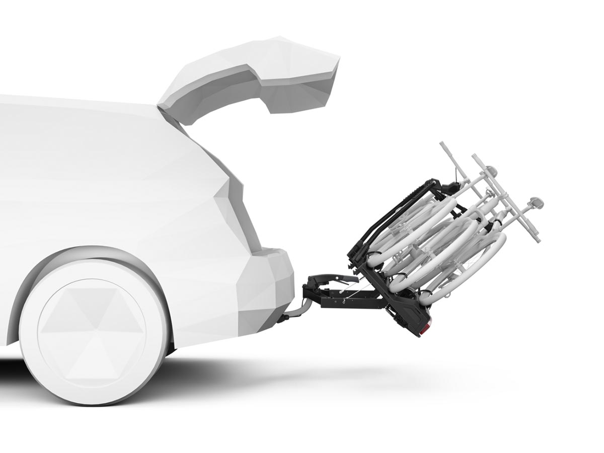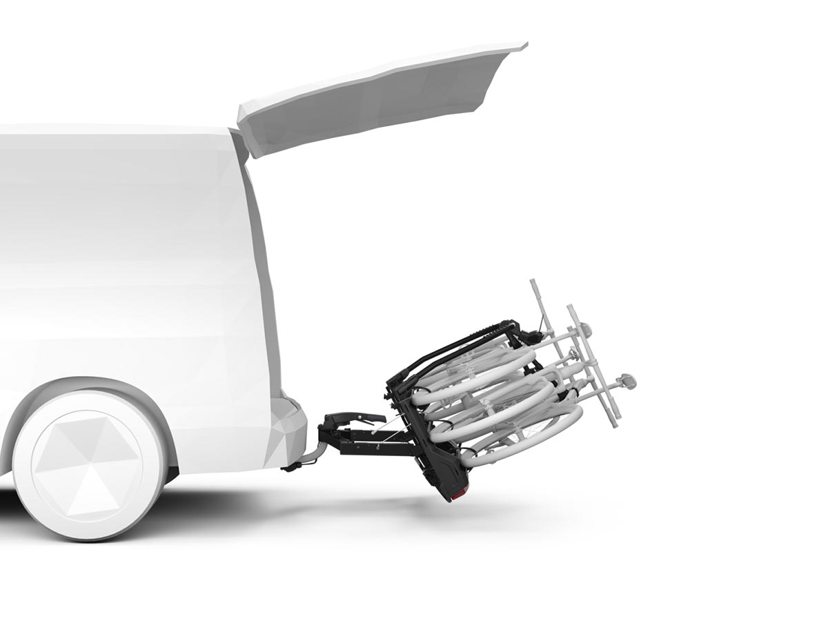 - Acceso fácil al maletero con o sin bicicletas cargadas gracias a la inteligente inclinación por pedal